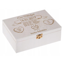 Personalizowane, drewniane skrzynki z ozdobnym grawerem przypadną do gustu obdarowywanym i pozostaną piękną pamiątką.