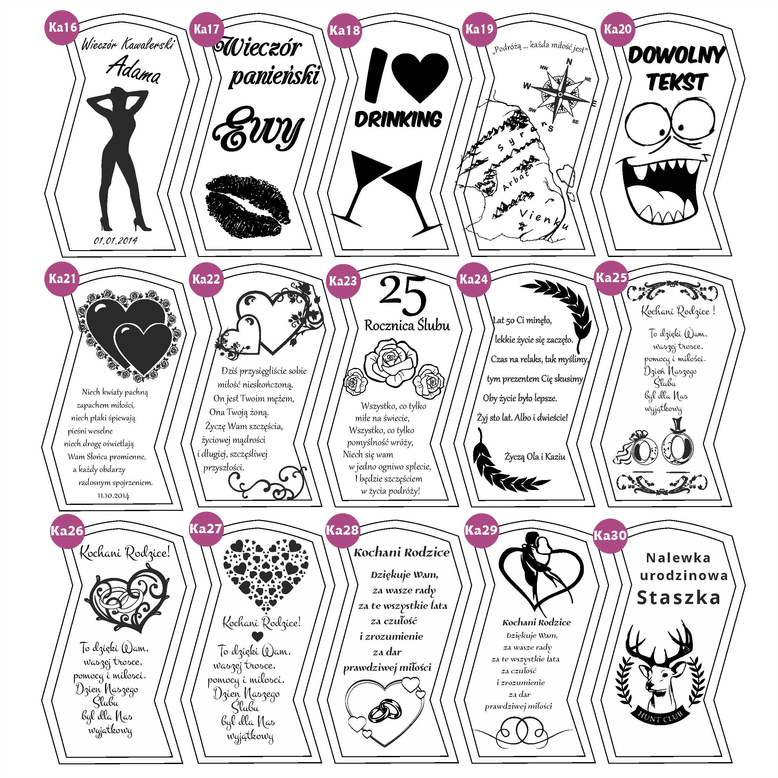 - W wiadomości do sprzedającego lub wiadomości e-mail prosimy o podanie wybranych wzorów oraz przesłanie własnego tekstu do wygrawerowania.