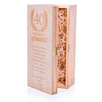 Personalizowana, drewniana skrzynka na wino z ozdobnym grawerem przypadnie do gustu obdarowywanym i pozostanie piękną pamiątką.