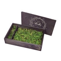 Prezentujemy Państwu czarne, drewniane pudełko z mchem na zdjęcia o wymiarach 15 x 10 mm .