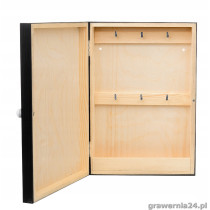 Skrzynka wykonana jest z drewna sosnowego oraz sklejki 3 mm. Produkt dodatkowo wyposażony jest w eleganckie pozłacane zapięcie, które nadaje skrzynce oryginalny design